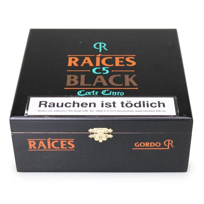 Die Raices C5 Black Gordo ist eine starke Zigarre, mit perfekten Raucheigenschaften. Hergestellt in Danli (Honduras) überzeugen diese mächtigen Zigarren mit Aromen von dunklem Holz, Leder, dunkler Schokolade und gerösteten Nüssen. Über den gesamten Rauchverlauf entwickelt sich eine angenehme Würze, die durch Noten von schwarzen Pfeffer perfekt begleitet werden.
