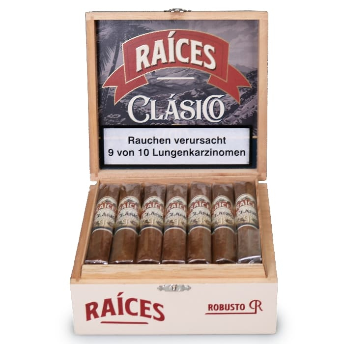 Die Raices Clasico Robusto sind eher milde bis mittelkräftige Zigarren aus Honduras. Bei einer Länge von 127,0 mm und einem Durchmesser von 19,8 mm, was einem Ring von 50 entspricht, überzeugt sie mit einer sehr guten Verarbeitung und einem exzellenten Zug- und Abbrandverhalten. Die Robusto dieser Puro Honduras begeistert mit einem ausgewogenen Geschmack, mit Aromen von gerösteten Nüssen und einer holzigen Grundaromatik.